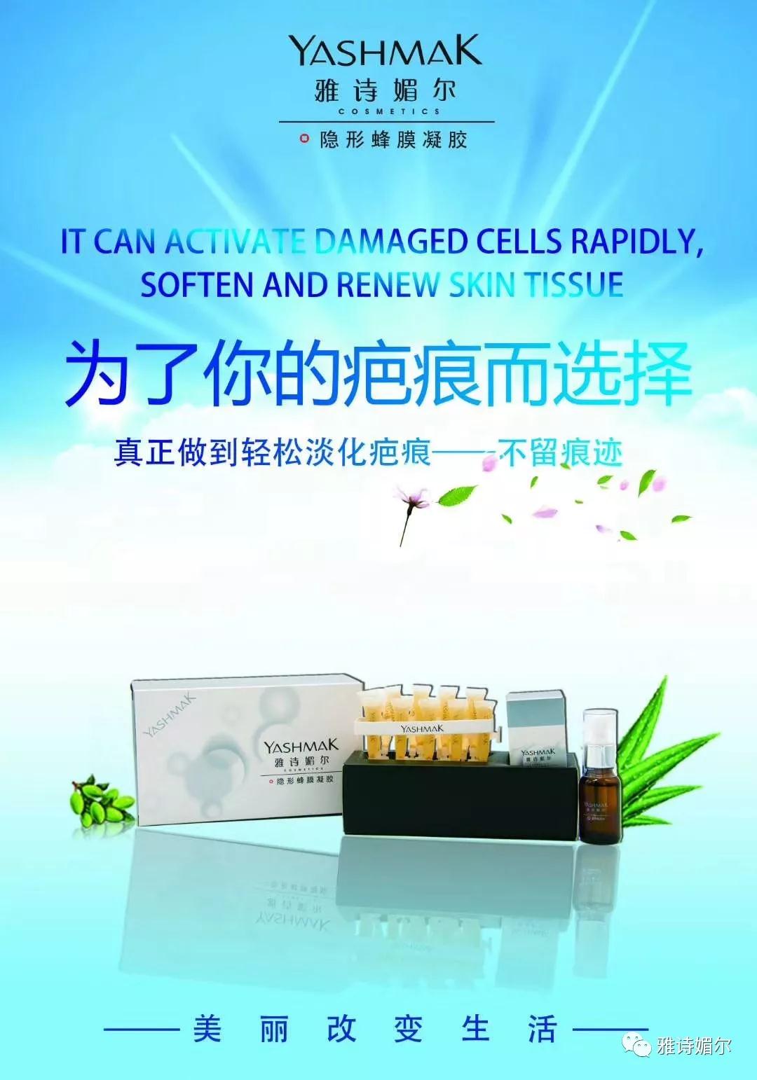 爱美之心人皆有之,这个大家都知道。有句话说:“天生丽质难自弃。”相信大家也明白。有的人很美,只不过脸上身上多了一道疤痕。古人云:破镜都要重圆,更何况疤痕,有了疤痕也一定要修复。那么,破镜真的能重圆么?当然能,至少有了疤痕也可以恢复到正常的皮肤状态。这就需要我们的产品了——雅诗媚尔隐形蜂膜凝胶。