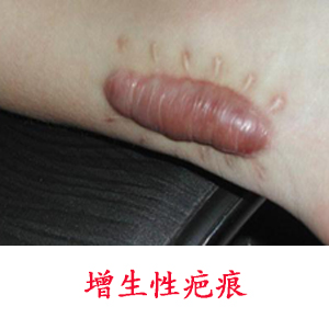 增生性疤痕,多发于损伤深度仅及真皮的创伤。增生性疤痕与正常疤痕的病理组织差别仅在于疤痕深部胶原纤维的增厚,表现为排列不规则,或呈波澜形,或缠绕成绳索状。